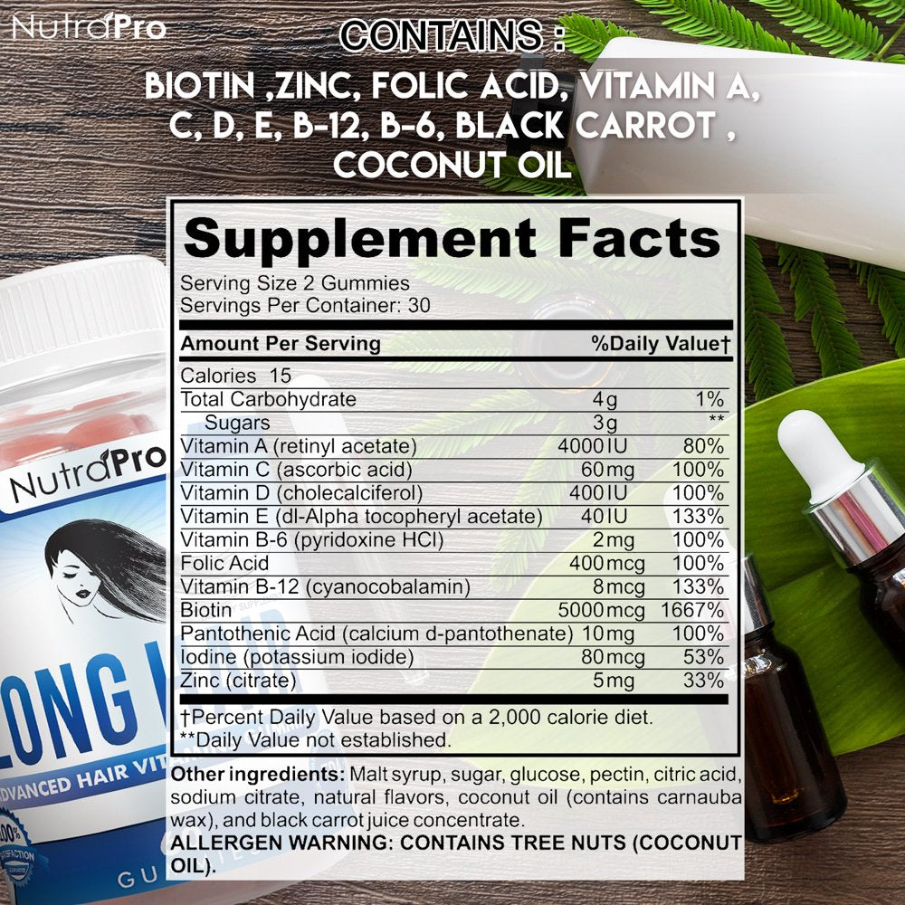 • NUTRAPRO’S PROMISE – Love your Long Hair gummy vitamins, or access your 120- day money-back guarantee! For best results, NutraPro recommends a 3-month supply of Long Hair.