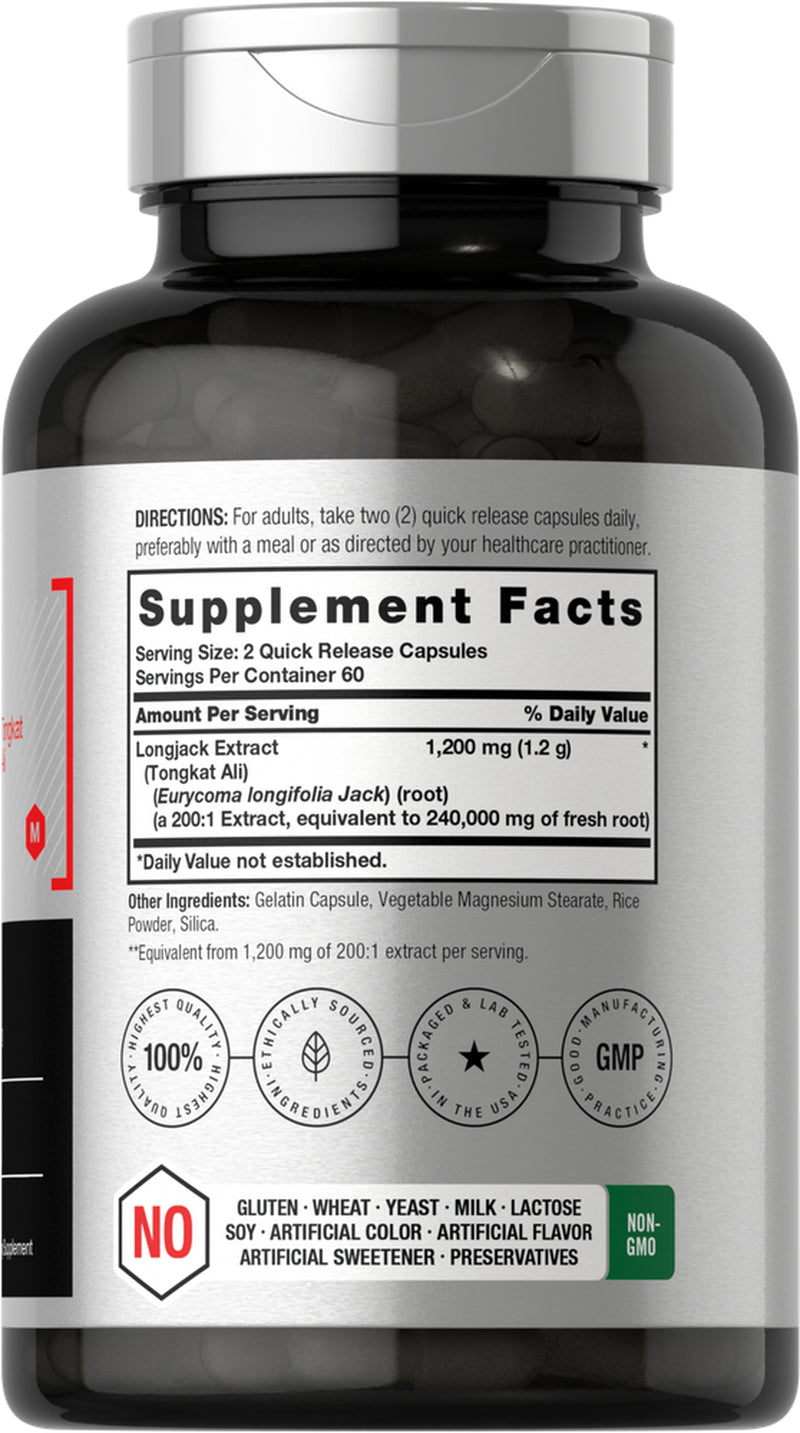 We've used innovation to create a scientifically-designed Extreme Longjack Supplement. It provides 1,200 mg of a potent 200:1 Longjack Extract per serving, equivalent to 240,000 mg of fresh root. Our formula is Gluten-Free, Non-GMO and contains no Artificial Flavor, Artificial Sweetener or Preservatives. Perfect for all Adult Men and any active lifestyle. Embrace the power of Extreme Longjack today with Horbaach!