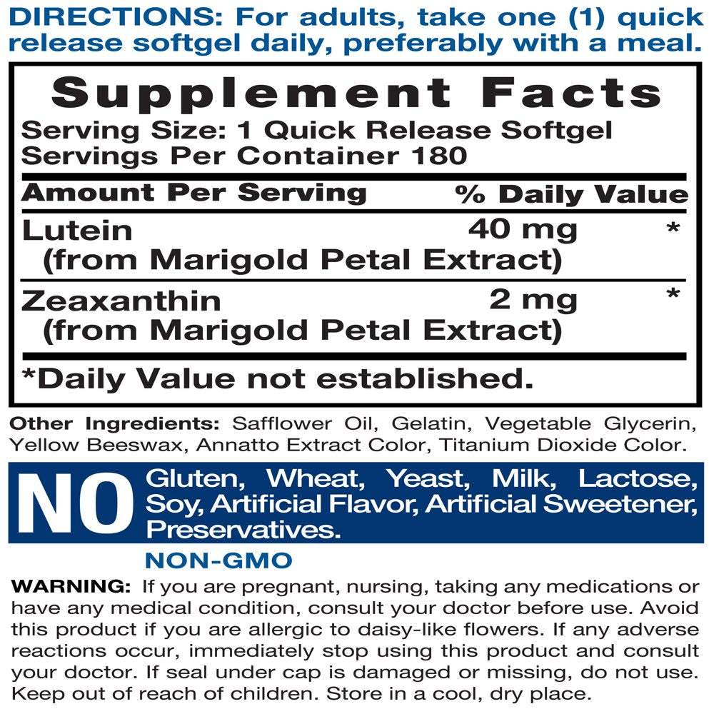 - Lutein plus zeaxanthin 40 mg is Soy Free, Gluten Free and Non-GMO