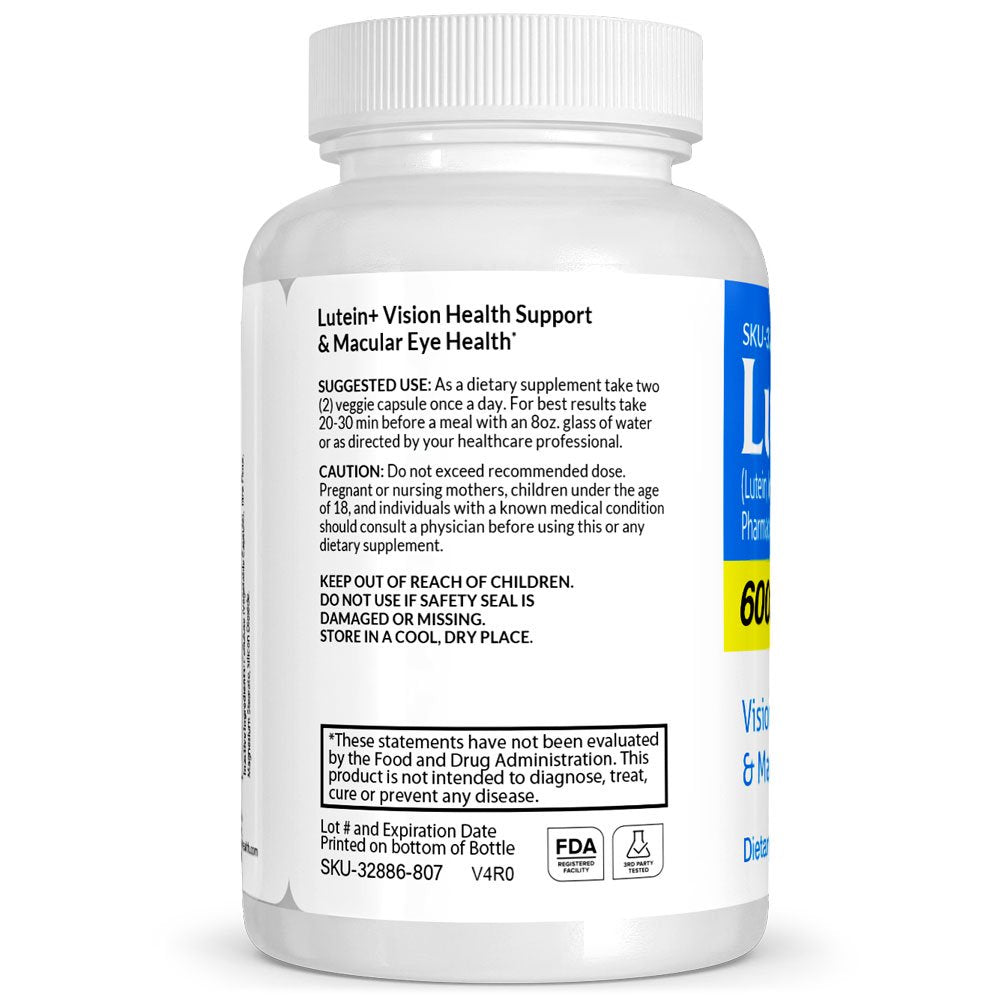 Lutein 600mg Pharmaceutical Grade OTC eye vitamins with lutein are specifically formulated to provide a powerful dose of Lutein, a naturally occurring carotenoid that is essential for maintaining healthy vision. Lutein 20 mg with zeaxanthin is found in a variety of fruits and vegetables, but it can be difficult to consume enough through diet alone, making it important to supplement with a high-quality source like Lutein. You can buy Lutein+ online from Vitasource at Walmart with confidence. *These statements have not been evaluated by the Food and drug Administration. This product is not intended to diagnose, treat, cure or prevent any disease.