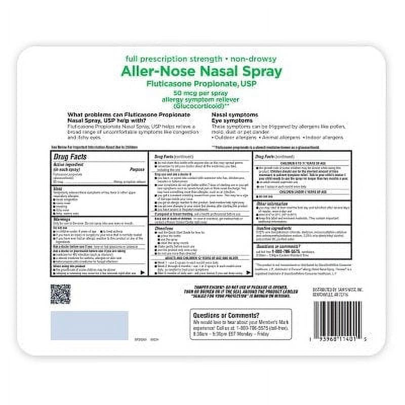 2 x Bottles M.M Aller-Nose, Fluticasone Nasal Spray 50mcg, 144 sprays each Compare the active ingredient in this non-drowsy formula with the active ingredient in Flonase Allergy Relief. Get temporary relief from symptoms of hay fever or other respiratory allergies including nasal congestion, runny nose, sneezing, itchy nose and itchy, watery eyes. These symptoms can be triggered by a variety of indoor and outdoor allergens including pollen, mold, dust or pet dander.