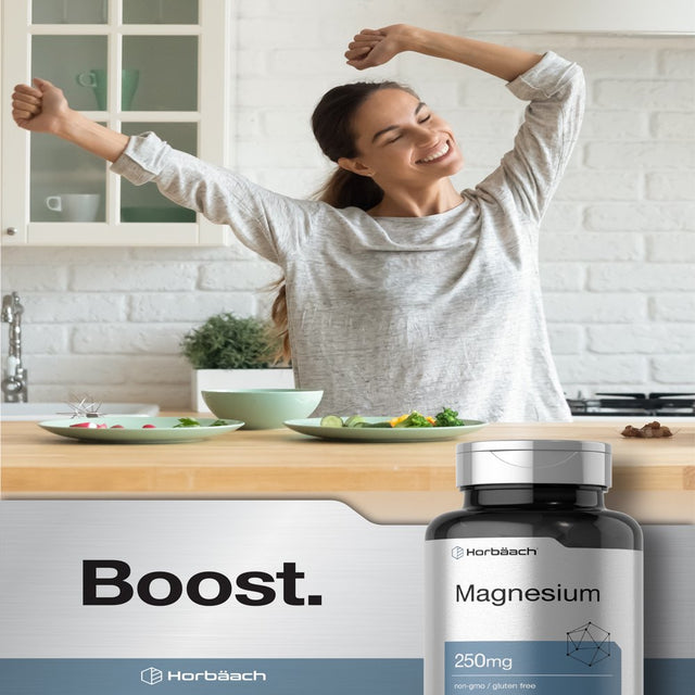 Support a balanced routine with Horbaach Magnesium! Designed for men and women, our vegetarian supplement features Magnesium in coated caplets, delivering 250 mg of Magnesium (as Magnesium Oxide) per caplet. It is gluten-free, non-GMO, and naturally free of preservatives, making it the perfect choice for a strong routine.