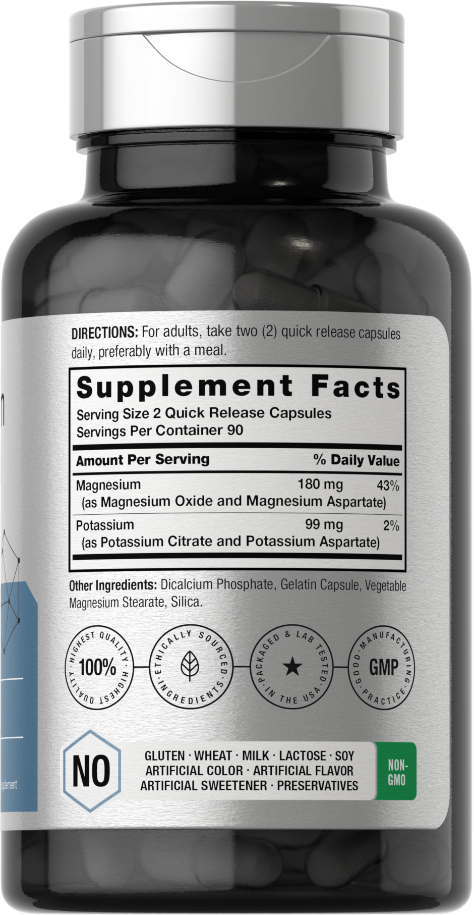 At Horbaach, our Magnesium Potassium Aspartate combines these two essential minerals in one gluten-free and non-GMO supplement. Our formula features an advanced complex of 180 mg of Magnesium and 99 mg complex of Potassium in quick-release capsules for optimal support. Enjoy exceptional value now with our 180-capsule supply and live life Horbaach healthy!