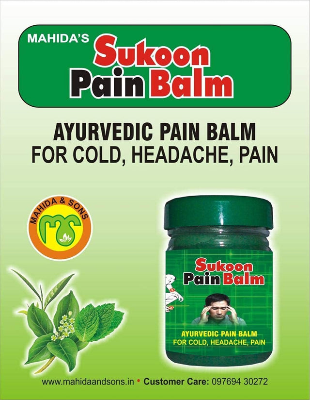 Sukoon Pain Balm is strong and effective giving you relief from common conditions like Headache, Cold, Nose Block, And Pain. The conveniently sized glass bottle ensures easy of carrying and keeps its quality intact throughout it’s life Sukoon Pain Balm is an ointment made using herbal ingredients like Pudinah Ka Phool, Wintergreen Oil, Nilgiri,Ajwain Ka Phol,Kapoor,Hard Paraffin,White Vaseline,Permissible Green Clr and Chah Patti Oil which gives the product its definite identity as well as efficacy.