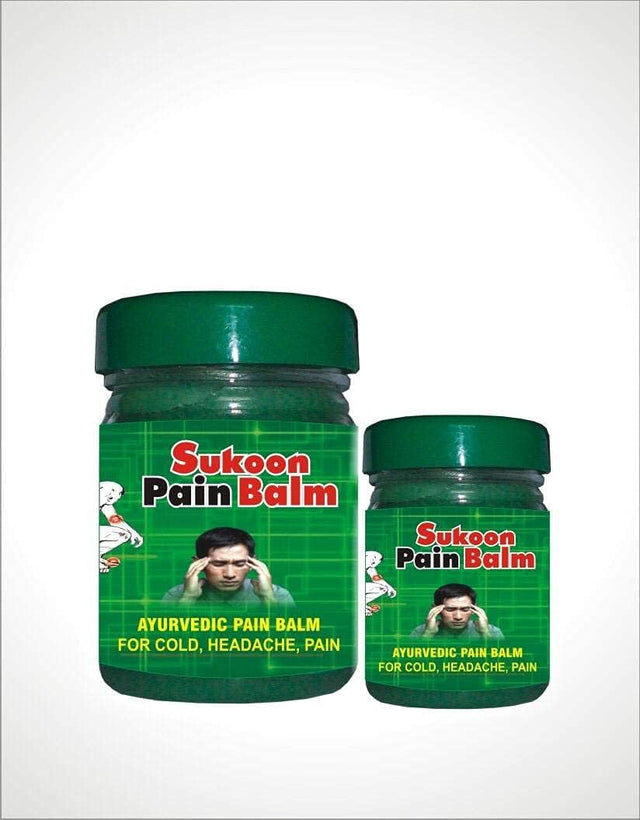 Sukoon Pain Balm is strong and effective giving you relief from common conditions like Headache, Cold, Nose Block, And Pain. The conveniently sized glass bottle ensures easy of carrying and keeps its quality intact throughout it’s life Sukoon Pain Balm is an ointment made using herbal ingredients like Pudinah Ka Phool, Wintergreen Oil, Nilgiri,Ajwain Ka Phol,Kapoor,Hard Paraffin,White Vaseline,Permissible Green Clr and Chah Patti Oil which gives the product its definite identity as well as efficacy.