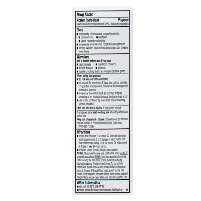 - Compare to active ingredient of Afrin No Drip - 1 FL. OZ. (30 mL).