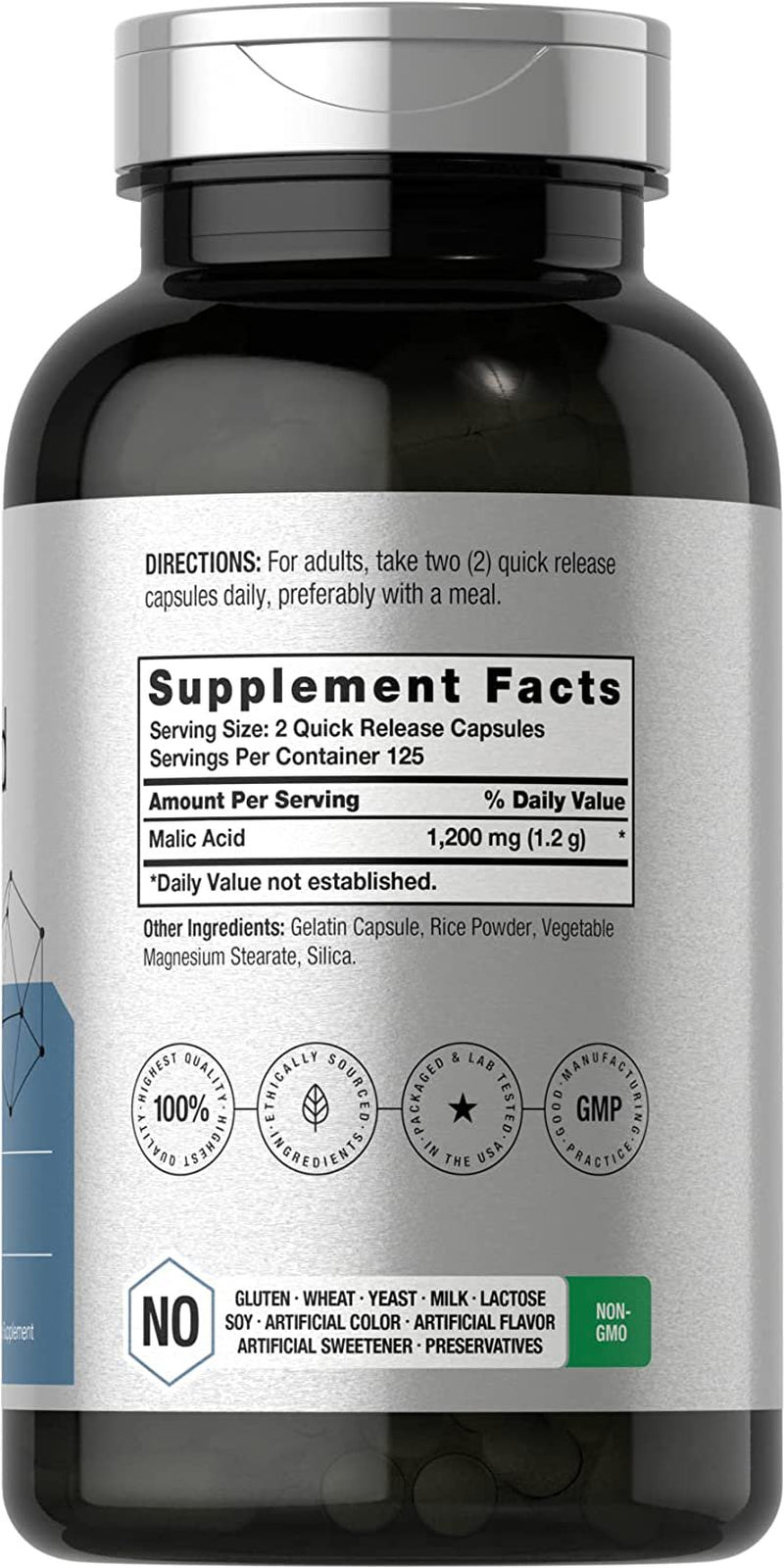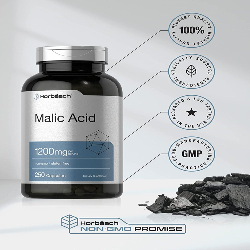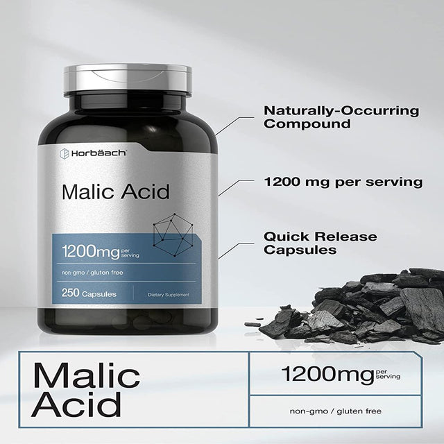 Malic Acid Capsules | 1200Mg | 250 Count | Non-Gmo and Gluten Free Supplement | by Horbaach