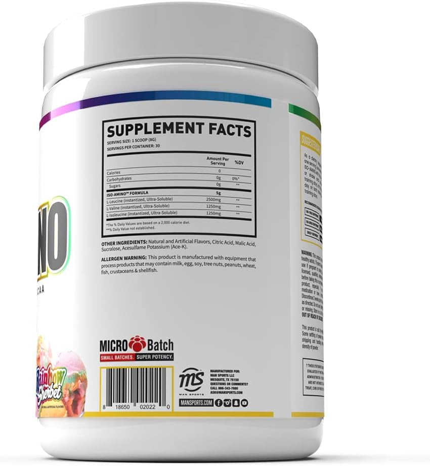MAN Sports Iso-Amino Bcaa Powder, Rainbow Sherbet, 255 Gram