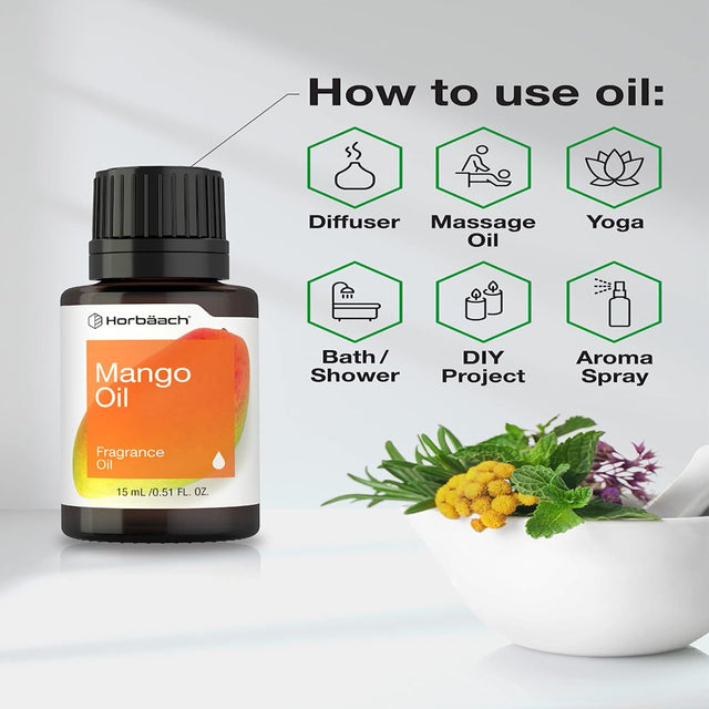 Aromatherapy with Mango Fragrance Oil: Create your tropical paradise with the sweet scent of Mango Fragrance Oil. Often considered sacred in many cultures, this sunkissed tropical fruit has a light and fruity aroma that will uplift your mind, body, and spirit, transporting you to bright and sunny days! How to Use Mango Fragrance Oil: Mango Fragrance Oil can be used in many ways as a DIY aromatherapy agent. Enjoy the benefits of fragrance oil in candle making, incense, potpourri, soap, deodorant, and other bath and body products. Oils are also commonly used in a diffuser. Horbaach Mango Fragrance Oil: Horbaach Mango Fragrance Oil provides the sweet tropical scent of Mango in a convenient 15 mL dropper bottle. We craft our oils with a careful consideration for quality, bringing you the finest fragrances for your aromatherapy routine.