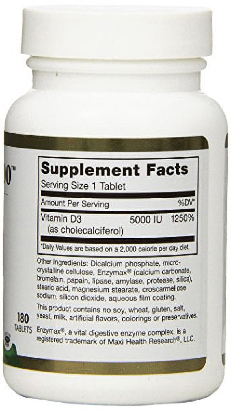 Maxi Health Natural Vitamin D3 - "5000 IU" - Nutrition Supplement , 180 Tablets , Kosher