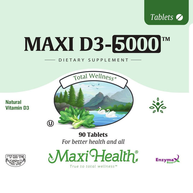 Maxi Health Natural Vitamin D3 -"5000 IU" - Nutrition Supplement - 90 Tablets - Kosher
