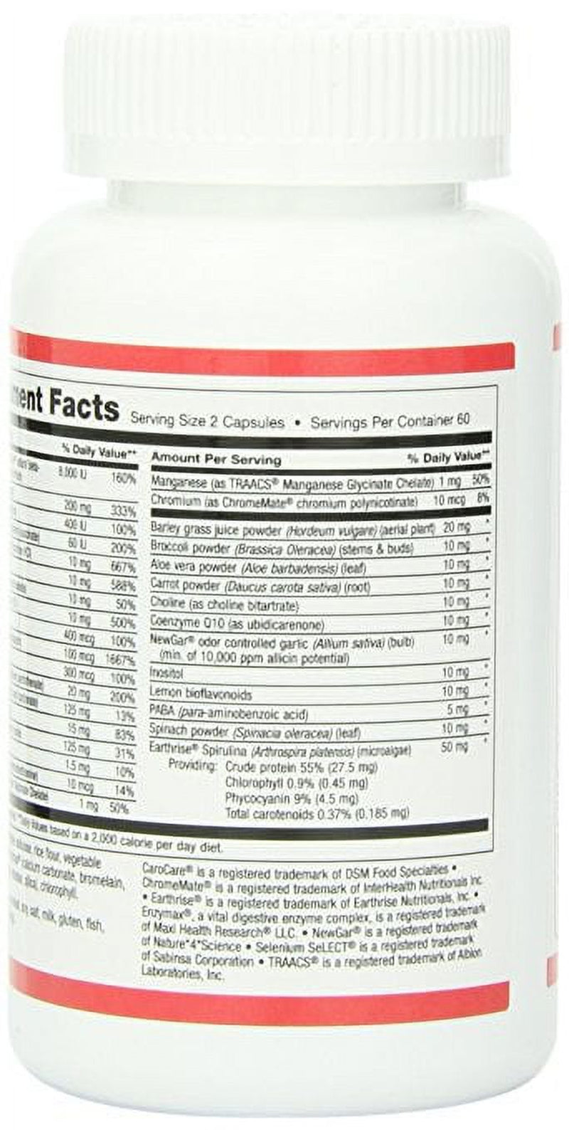 - Vegetable cellulose, microcrystalline cellulose, vegetable magnesium stearate, Enzymax (calcium carbonate, bromelain, papain, lipase, amylase, protease, silica), chlorophyll.