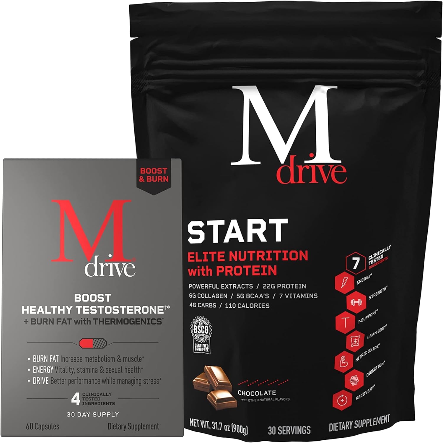 - Combine 2 Great Formulas: The best selling Mdrive Boost & Burn with the New Mdrive Start Everyday Nutrition and Protein Powder to create the Ultimate Men's Everyday Health Supplement and Protein