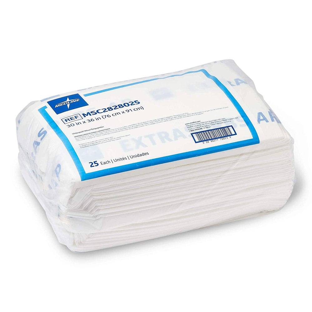 Medline Extrasorbs Premium Underpads, Disposable Bed Pads for Adult Incontinence, 30X36" (25 Count)