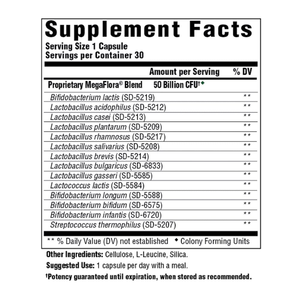 - PROMOTES DIGESTIVE HEALTH: Our signature probiotic with a higher potency than our original MegaFlora to support intestinal health and immunity