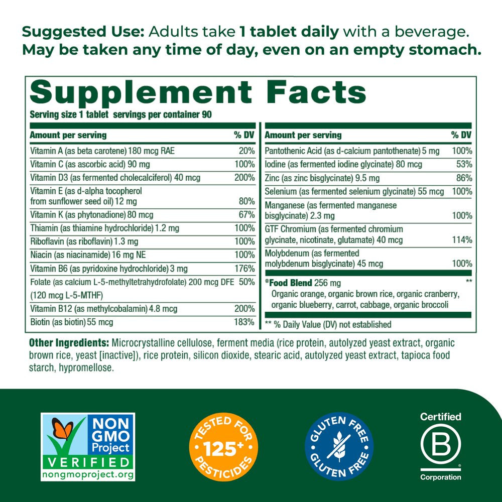 Formulated for the specific health needs of mature women, MegaFood Women's 55+ One Daily Multivitamin delivers the nutrition you need to stay healthy and active. Each serving delivers 19 essential nutrients including B vitamins for energy and metabolism, vitamins D and K for bone health, biotin and vitamin E for healthy skin and more, along with a real food blend. We've known for decades how a quality multivitamin can fill nutritional gaps in our diets, but new research is finding that daily multi supplementation can also support cognition and a positive outlook. With just one tablet per day, this nutritious multi is an easy addition to your health routine.