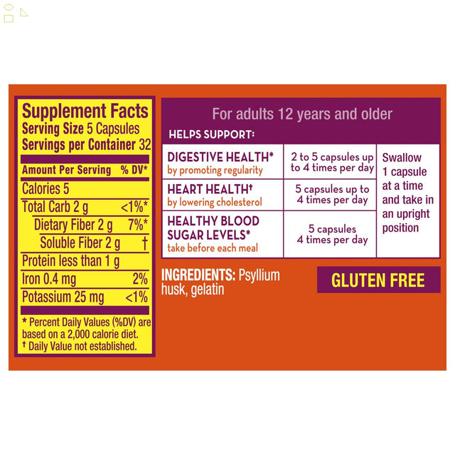Digestive system making you feel sluggish? Start by taking Metamucil Multi-Health Fiber Capsules every day to trap & remove the waste that weighs you down, so you feel lighter and more energetic**. Metamucil is the only leading brand made with Psyllium Fiber^, a plant-based fiber that helps promote digestive health.* It also helps maintain healthy blood sugar levels*and lower cholesterol .