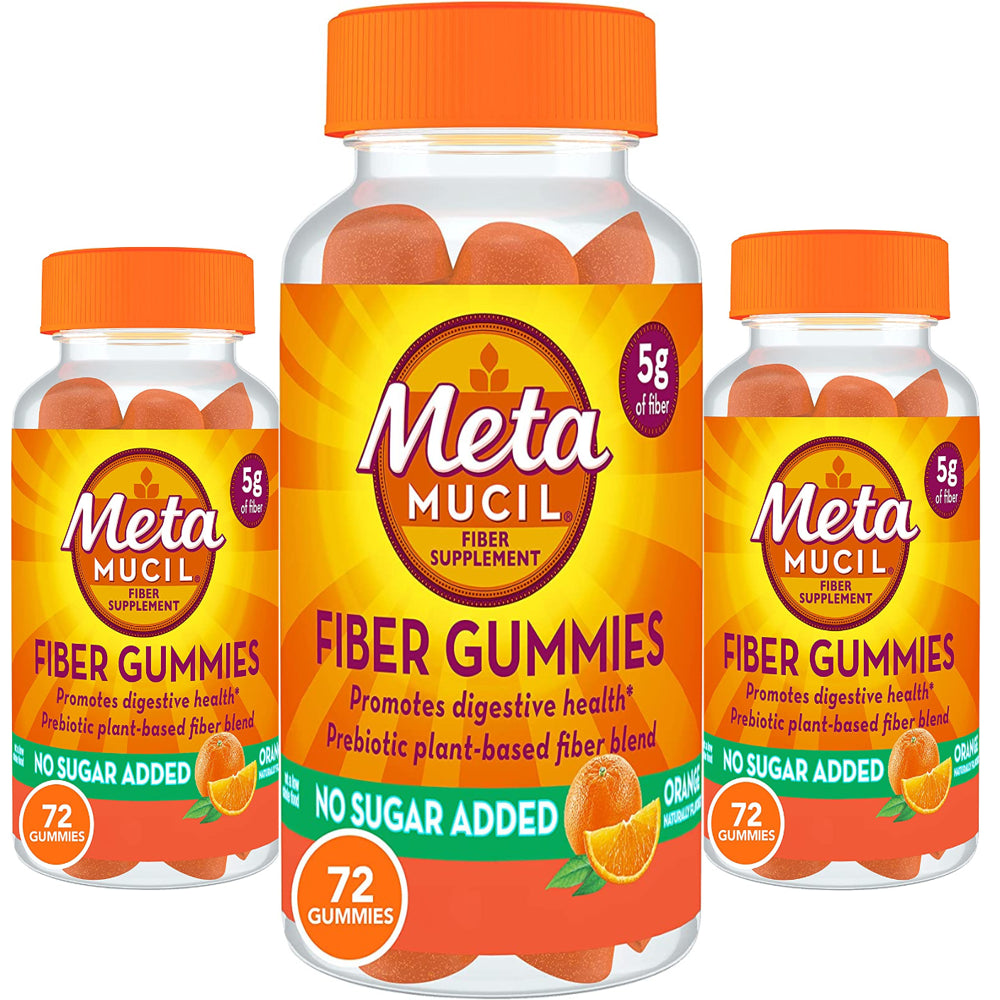 Metamucil Fiber Supplement Gummies, Sugar Free Orange Flavor, Prebiotic 72 Count (3-Pack) *EN