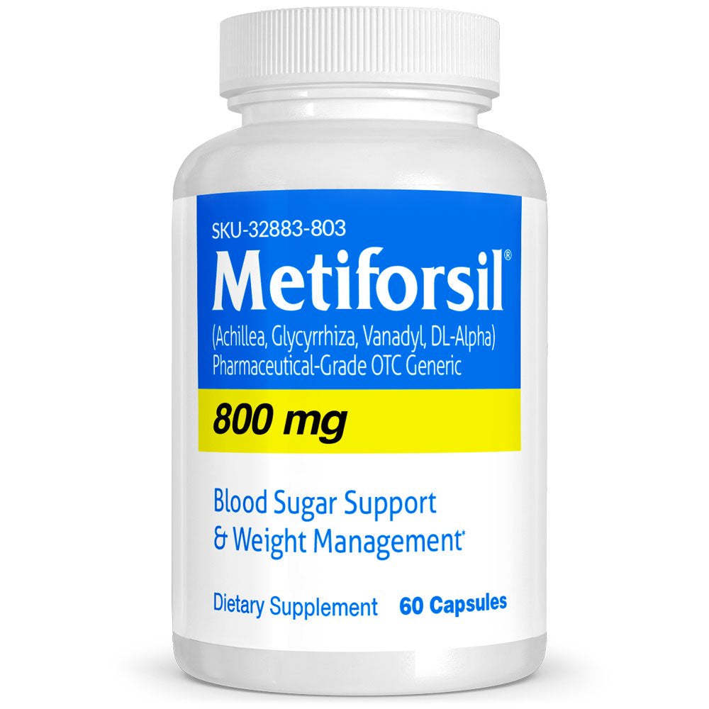 Metiforsil Natural Alternative Pharmaceutical Grade OTC Blood Sugar Support is specifically formulated to provide comprehensive support for maintaining healthy blood sugar levels. This dietary supplement contains a blend of natural ingredients that work together to promote healthy insulin sensitivity, support metabolic wellness, and may improve energy and stamina. With regular use, Metiforsil can help support overall blood sugar balance, making it an excellent addition to any wellness routine. You can buy Metiforsil online from Vitasource at Walmart with confidence. *These statements have not been evaluated by the Food and Drug Administration. This product is not intended to diagnose, treat, cure or prevent any disease.