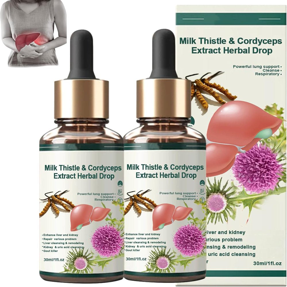 Milk Thistle & Cordyceps Sinensis Drops, Milk Thistle & Cordyceps Extract Herbal Drop, Herbal Supplements, Powerful Liver Support 2Pcs