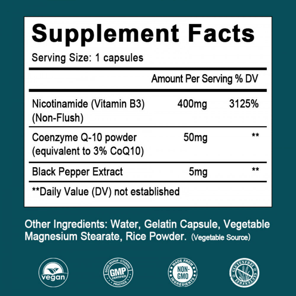 - 400mg Nicotinamide,with Vitamin B3,D3,B6,CoQ10