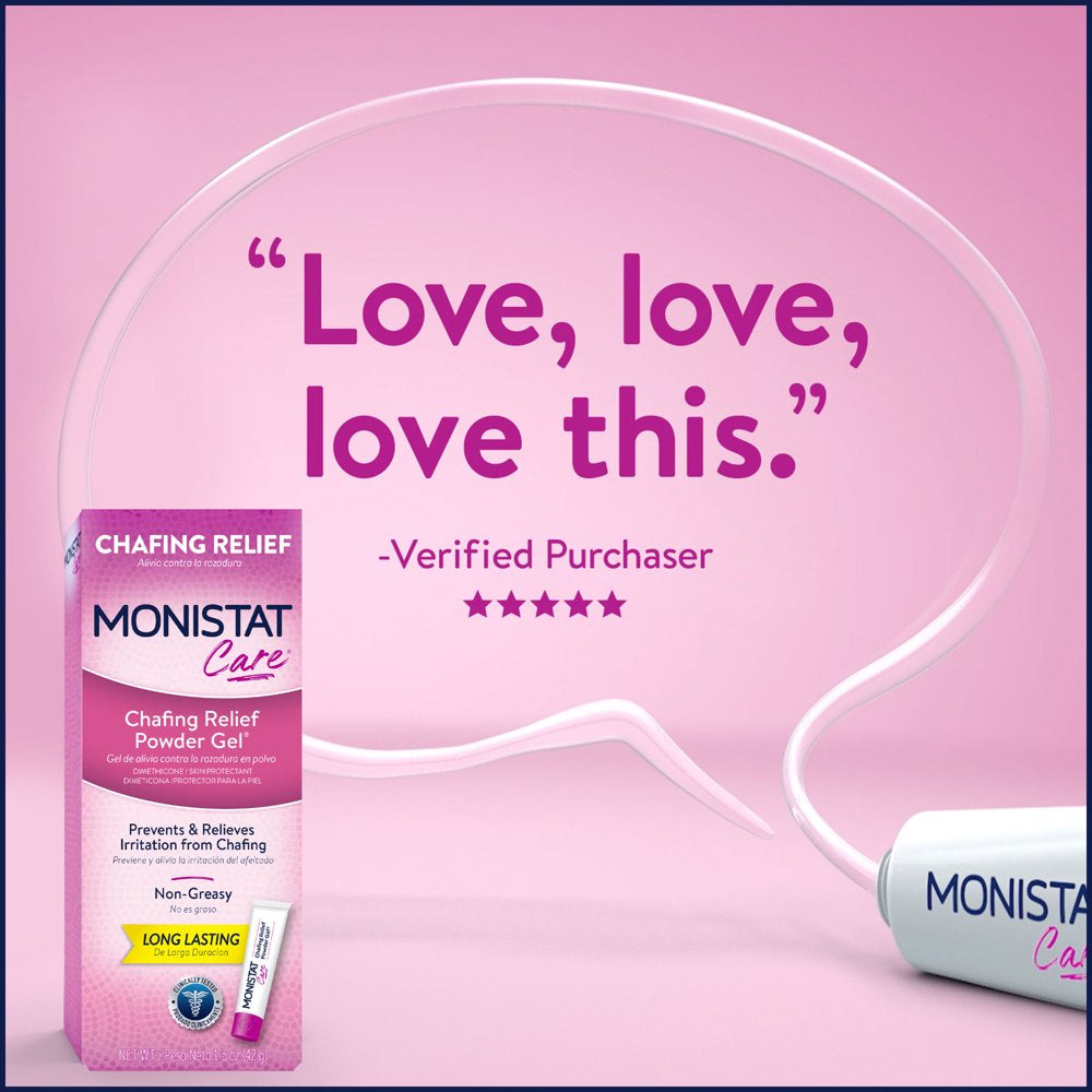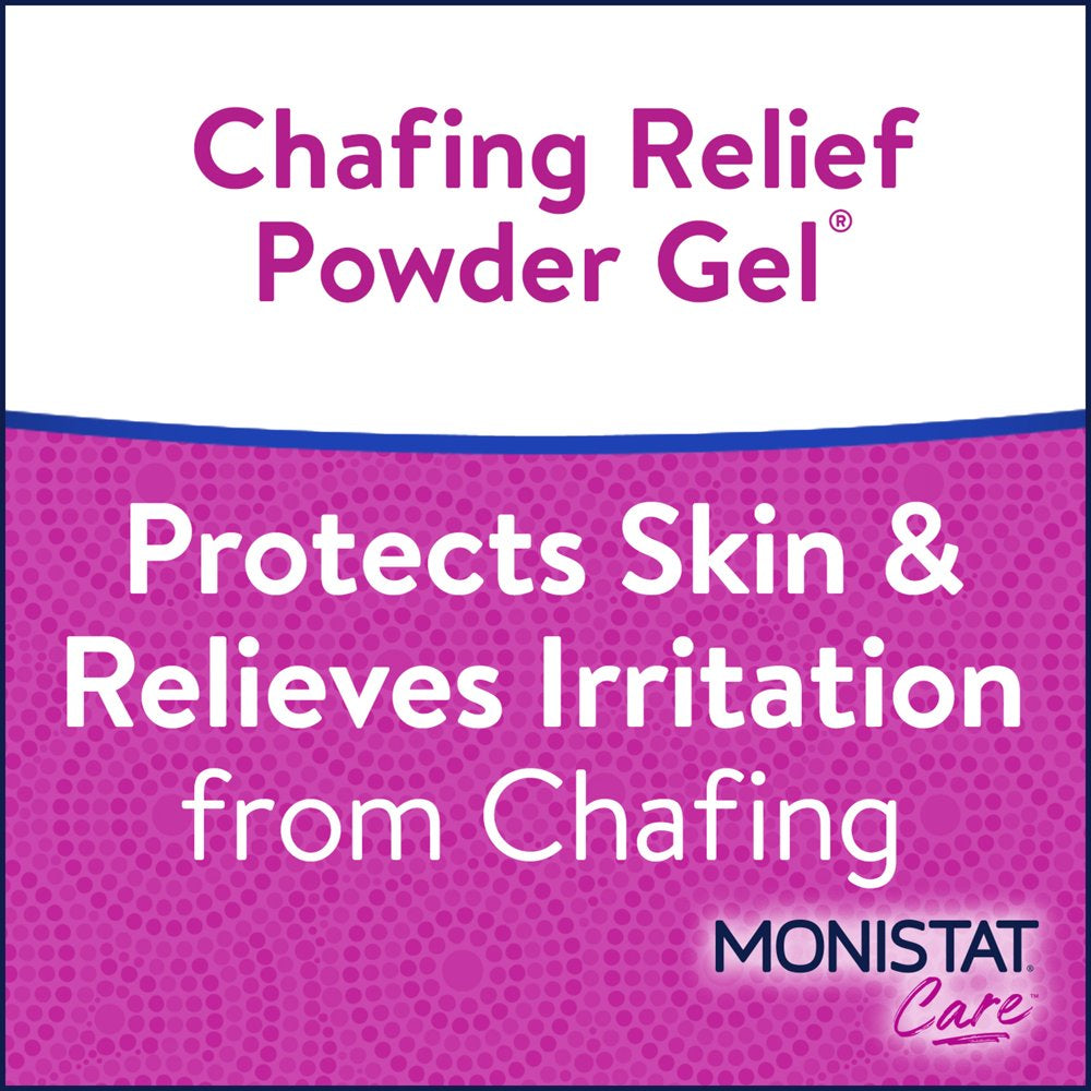 - Monistat Chafing Relief Powder Gel helps provide daily and long-lasting chafing prevention and relief for your body’s most intimate and delicate areas