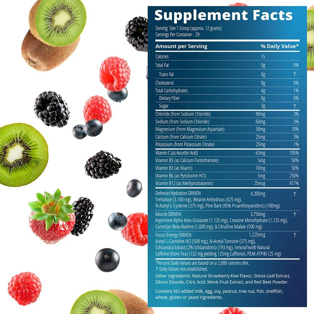 Driven? is the first pre-workout formula developed with pure ingredients that include natural extracts, amino acids, vitamins, and minerals to support the body's complex metabolic function. Designed for the professional athlete or highly active individual to achieve their best performance, Driven? is yet safe enough for any adult to use on a daily basis. Besides its three potent targeted blends to support specific aspects of exercise-induced fatigue, Driven? contains an array of energy supporting B-Vitamins along with electrolytes that can be depleted during extensive exercise. The ingredients in our Defense/Hydration Driven blend are critical during workouts. Trehalose, betaine anhydrous, N-acetyl-L-cysteine (NAC), and pine bark extract promote improvements in hydration and antioxidant support. These compounds combat the loss of water and provide antioxidant support to offset the increased amount of exercise-induced damaging free radicals. Pre-exercise ingestion of trehalose supplies a slow sustained release carbohydrate source without spiking blood sugar levels.* Betaine anhydrous is an osmolyte and has shown cell protection against dehydration stress. N-acetyl-L-cysteine supports glutathione levels, which combats free radicals created during exercise.* The proanthocyanidins are potent antioxidants from pine bark extract and can support blood flow and cardiovascular health. Driven's combination of synergistic ingredients reinforces both the mind and body for enthusiastic training leading to rapid results. These statements have not been evaluated by the Food and Drug Administration (FDA). These products are not meant to diagnose ½ treat or cure any disease or medical condition. Please consult your doctor before starting any exercise or nutritional supplement program or before using these or any product during pregnancy or if you have a serious medical condition.