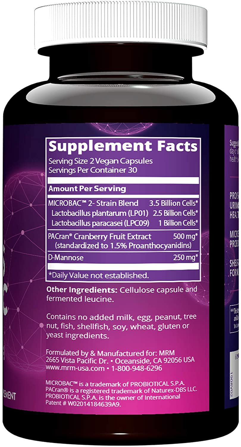Clinically Proven Dietary Supplement Gluten Free Certified Vegan Proven to Support Urinary Tract & Vaginal Health MICROBAC™ Ensures 5X Probiotic Activity Shelf-Stable & Patented Formula Our Women’s Probiotic, provides an effective dose of two beneficial microbial strains to support overall intestinal and immune health. Research indicates that our customized MICROBAC™ live transport system increases the stability and delivery of our probiotics 5-fold, resulting in 3.5 billion cells providing the same colonization and activity of 17.5 billion cells. In addition we have added two components, D-mannose and cranberry extract, to reduce the binding of pathogenic bacteria and yeasts to the walls of the bladder. This composition has been well studied and is the subject of a patent for its ability to support urinary tract health.