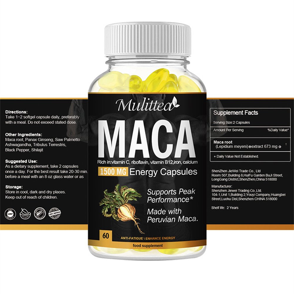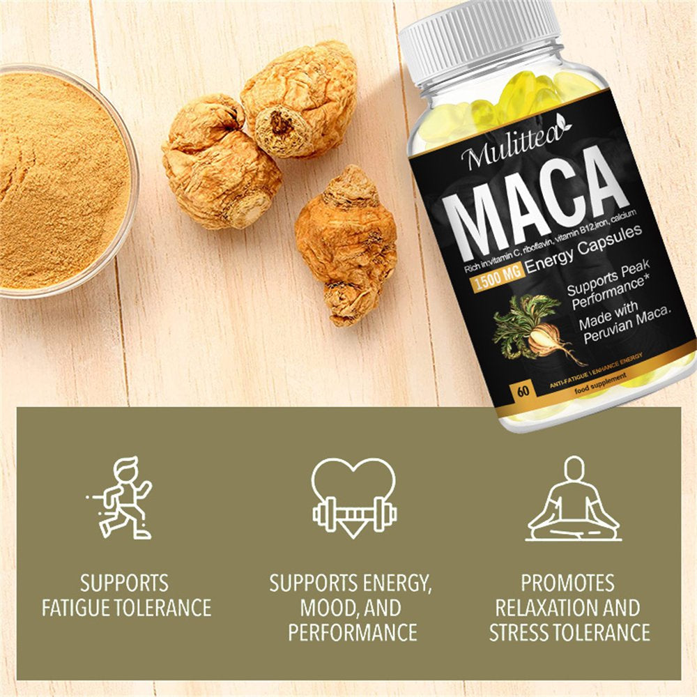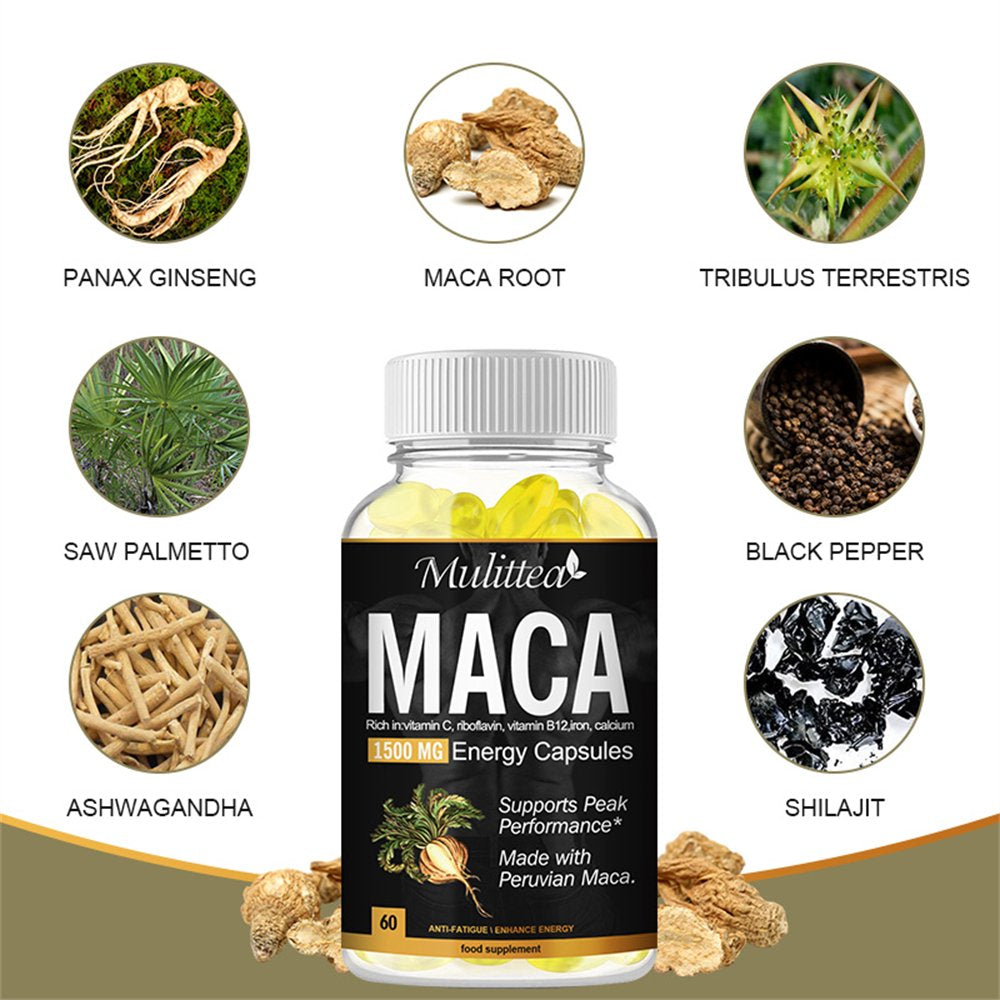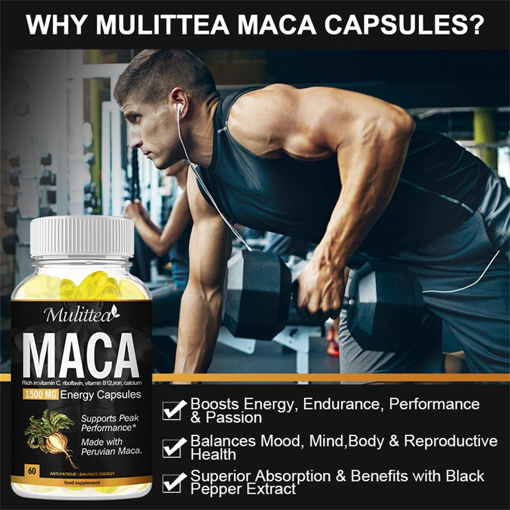 Mulittea 100% Pure Maca Root Extract Capsules 1500Mg, Enhancing Energy Male Supplement, Non-Gmo