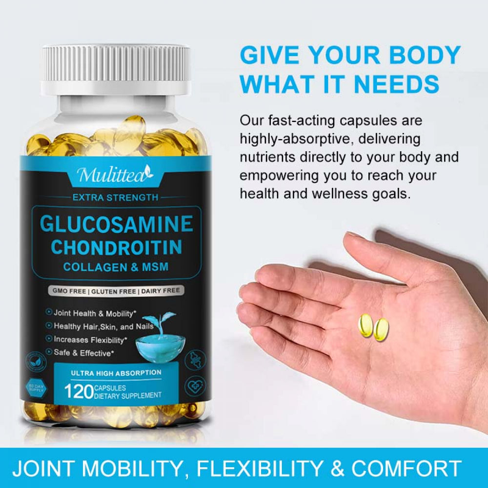 Mulittea Triple Strength Glucosamine Chondroitin with Msm,Support Joint Health Dietary Supplement Tablets,120 Capsules - 120 Capsules is backordered and will ship as soon as it is back in stock.