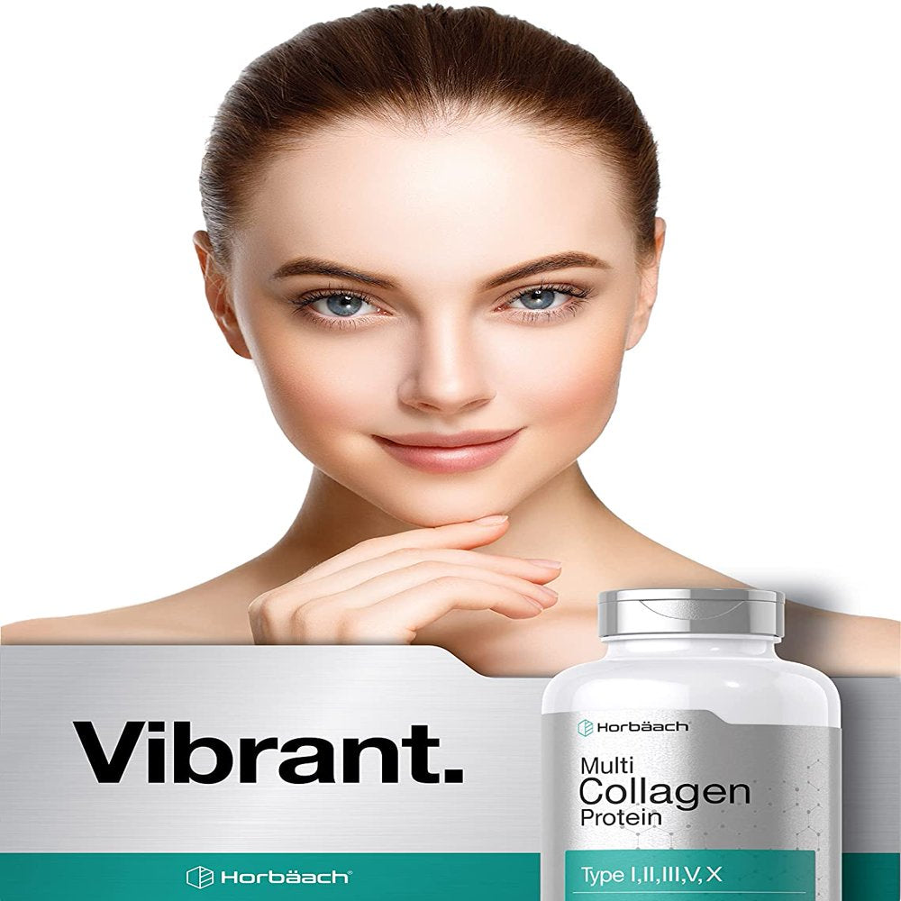 What is Collagen Protein? Collagen is the main structural protein in the body and a vital building block for nutrition. With a strong presence in hair, skin, nails and joints of men and women, Collagen has become the most popular ingredient in Beauty Products.* There are at least 16 types of collagen but roughly 80-90% of the Collagen in the body consists of type 1, 2 and 3. These Collagen types are found naturally in many food sources and added to nutritional supplements with other vitamins, such as biotin. How to get Collagen Protein: There are a variety of brands that carry Collagen products and dietary supplements in different forms. The most common include: Pills, Capsules, Liquid Drops, Gummies, Chews, Bulk Powder, Tea, Tablets and more. It's also utilized in topical products like Night Cream, Serums, Face Masks, Lotion, Shampoo, Oil Treatment, Gel and Moisturizer. Though, the more professional supplement brands use high quality innovation to create pure Hydrolyzed Collagen products. In addition, they contain a wider spectrum of Collagen for balanced support. About Multi Collagen Protein: Horbaach has used years of industry experience to craft a premium Multi-Collagen Complex. Our dynamic formula now contains a deep profile of vital ingredients with 5 types of Collagen Peptides (I, II, III, V, X) sourced from real whole foods. This includes Fish, Chicken, Bovine and Eggshell Membrane Collagen. Plus, it's Gluten-Free and contains no Artificial Sweetener or Preservatives. Simply take our Quick-Release capsules with water or any drink. Horbaach has officially raised the bar for Collagen Innovation with this ultra Complex.