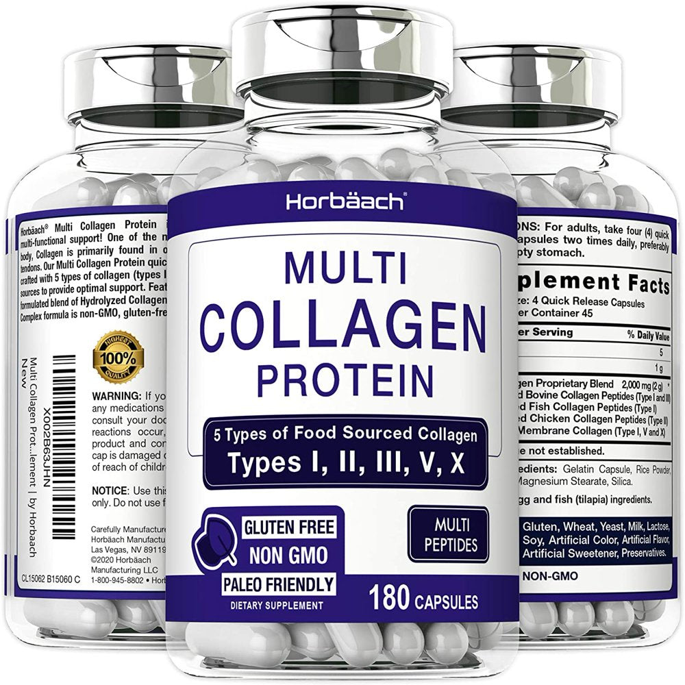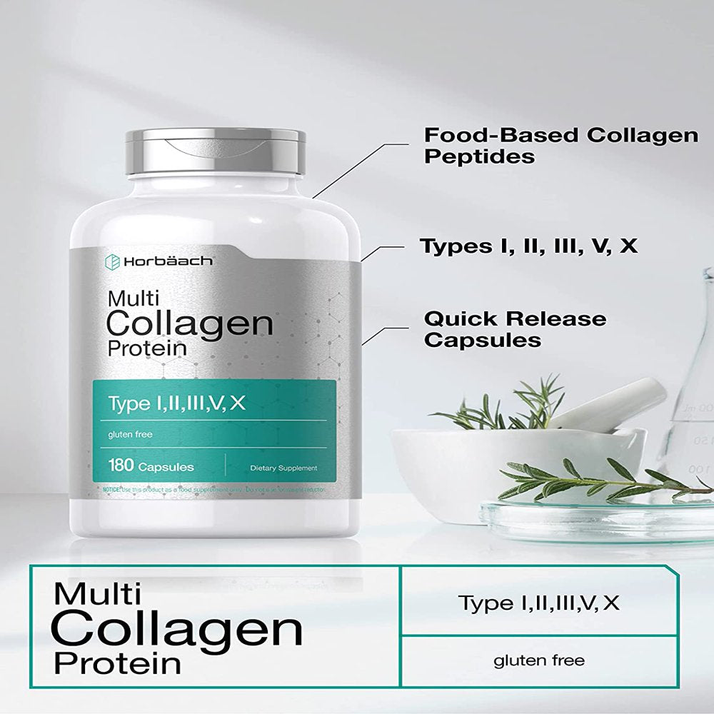 Multi Collagen Protein 2000 Mg | 180 Capsules | Type 1, 2, 3, 5, 10 | by Horbaach