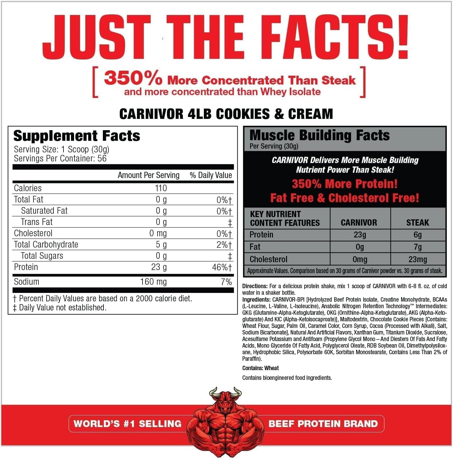- LACTOSE FREE: Many people are lactose intolerant and have problems digesting whey and other dairy proteins; CARNIVOR contains no lactose so it’s easier on the stomach than whey protein and won’t cause gas or bloating