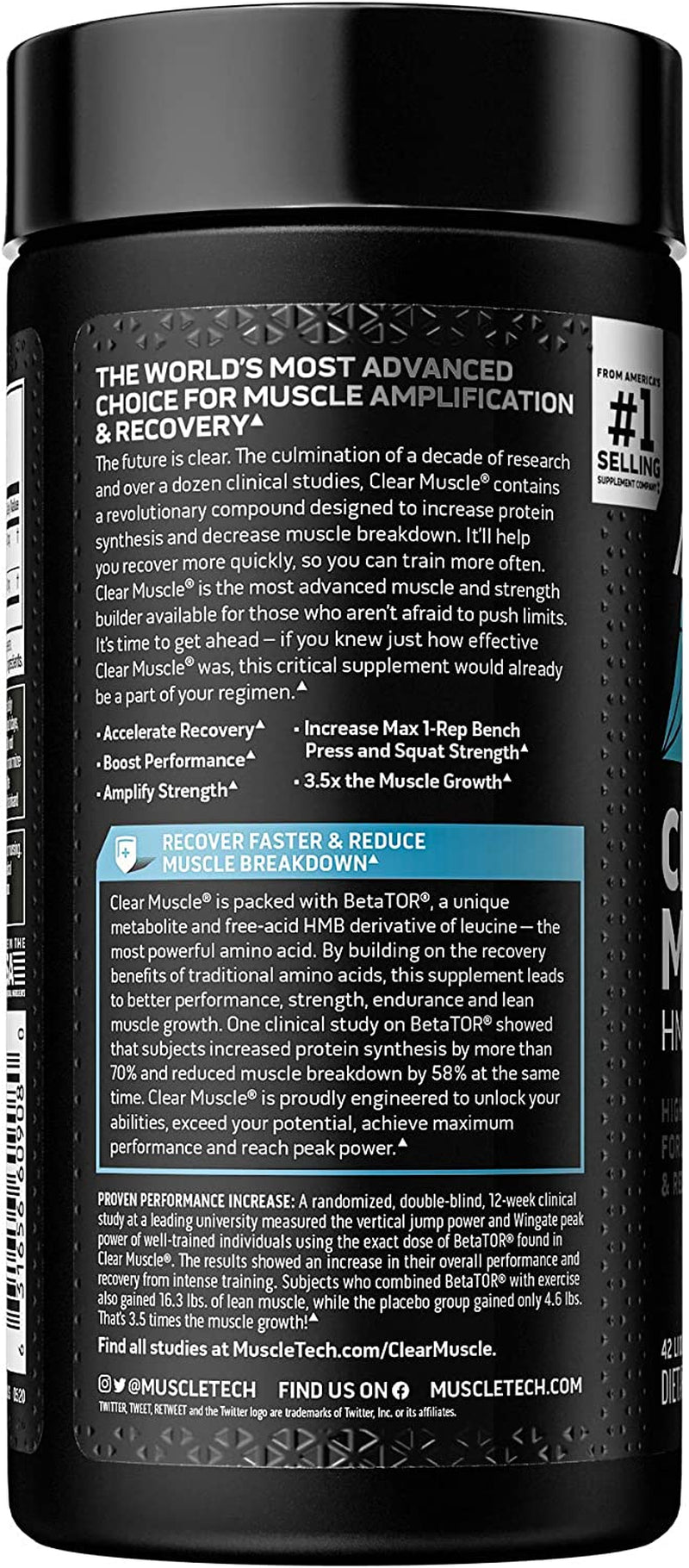 - HMB SUPPLEMENTS – Clear Muscle is packed with BetaTOR, a unique metabolite and free-acid HMB derivative of leucine – the most powerful amino acid