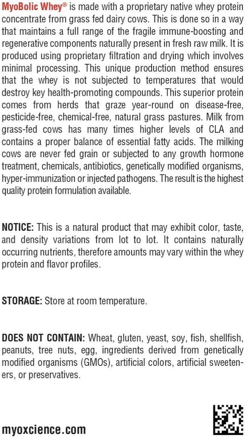 MYOXCIENCE Myobolic Whey | Grass Fed Whey Protein Concentrate | Supports Protein Metabolism and Healthy Body Composition