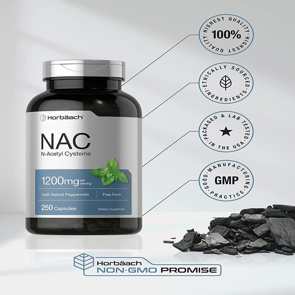 NAC N-Acetyl Cysteine 1200Mg | 250 Caplets | by Horbaach