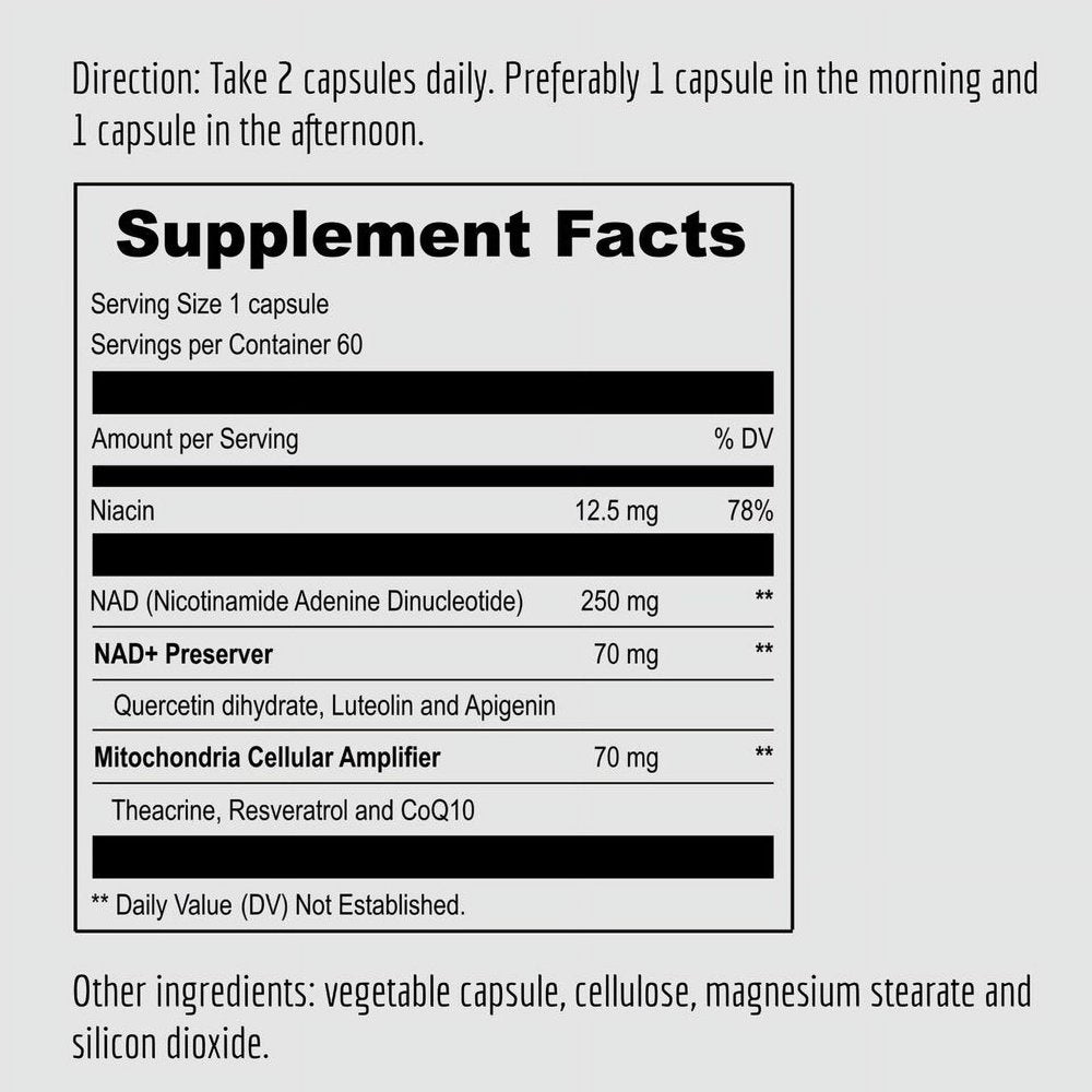 NAD+ Booster Supplement - Nicotinamide Adenine Dinucleotide 500 Mg - 60 Capsules