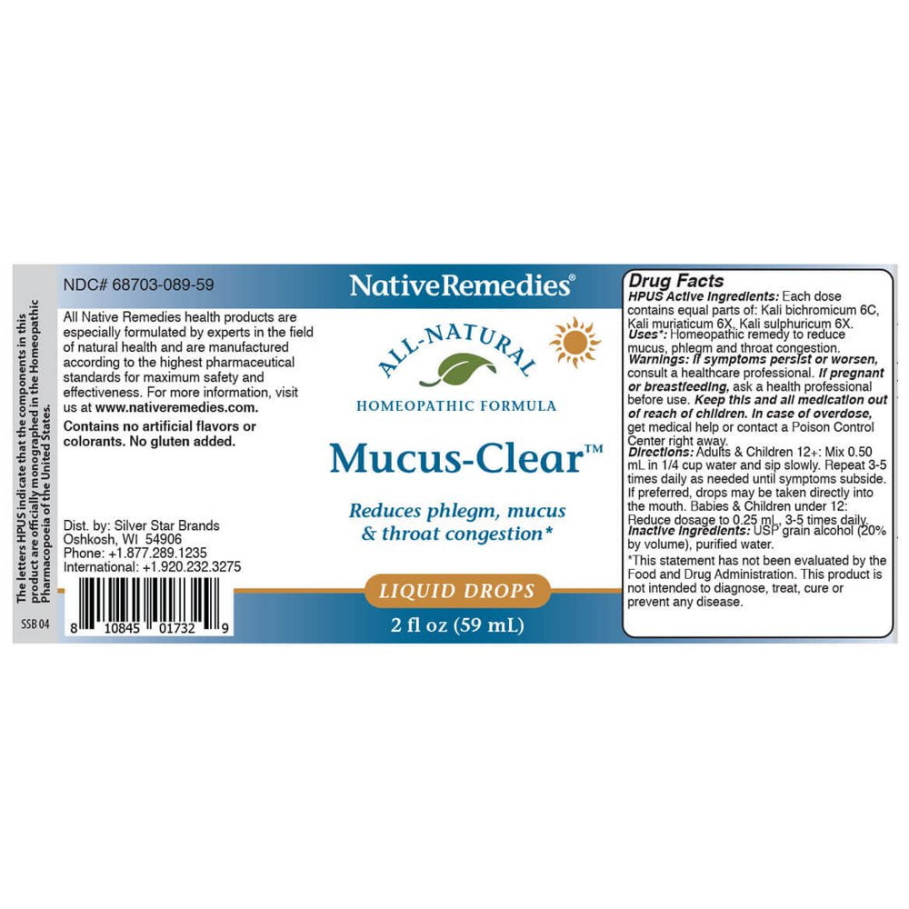 Native Remedies Mucus-Clear - Natural Homeopathic Formula for Symptoms of Throat Congestion and Excessive Mucus and Phlegm - Temporarily Clears Excess Mucus in Throat and Lungs - 59 Ml