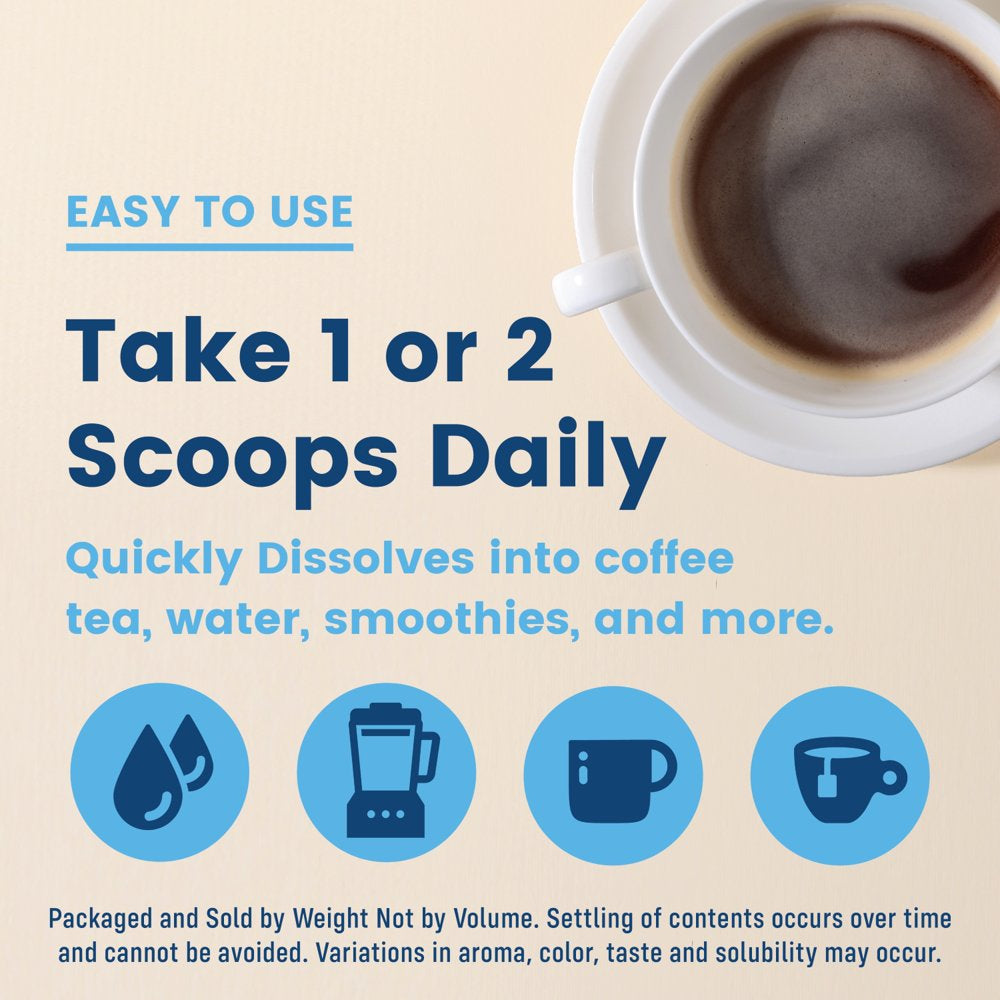 Collagen is the most abundant protein in your body and essential for the health of your bones, joints, skin, hair, nails, digestion, and more. Through supplementation, you’re restoring your body’s natural collagen levels so that you can achieve your wellness goals, faster. Benefits 10g Collagen Per Scoop: To maintain healthy bones, joints, hair, skin, and nails.** ✓ Support for the growth and repair of cartilage tissue ✓ Relieves joint inflammation and pain ✓ More youthful-looking skin, healthier nails, & noticeably thicker hair ✓ Improved gut health & decreased digestive discomfort ✓ Easier weight loss & more appetite control Type 1 and Type 3 Collagen: Did you know that there are 28 different types of Collagen? However, you’ll only find Type 1 and 3 in our jar. These two types make up over 90% of the collagen found in your body, so it’s crucial to maintain their levels so that you can feel good on the inside and out.** Certified Grass-Fed: We source our Collagen from 100% happy, healthy, pasture-raised cows. Because you are what you eat, eats. When you consume grass-fed beef (as opposed to grain-fed beef), you’re getting the very best nutritional profile that’s free of growth hormones. Just One Ingredient: Our Grass-Fed Bovine Collagen powder is just that—Collagen. Free from dairy, GMOs, gluten, and soy. Flavorless. Odorless. Tasteless. Unflavored Collagen seamlessly mixes into your favorite beverage. It’s made to dissolve quickly for a clump-free, flavorless experience. CONTAINS NO ADDED: Milk, shellfish, tree nuts, wheat, peanuts, or soy. Made on equipment that also processes milk, eggs, fish, tree nuts, and soy.