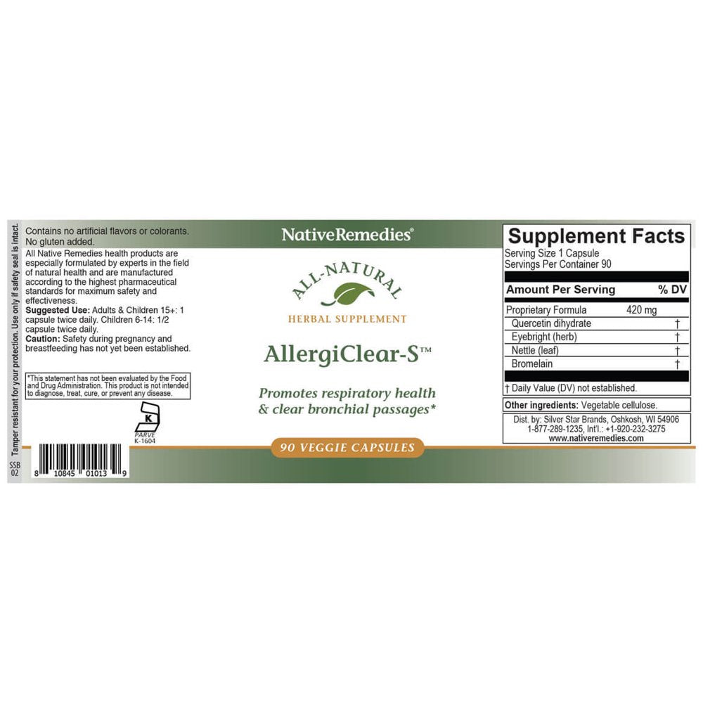 | Product Name | NativeRemedies AllergiClear-S - All Natural Herbal Supplement Promotes Respiratory Health and Clear Bronchial Passages Related to Allergy Symptoms - 90 Veggie Caps |
