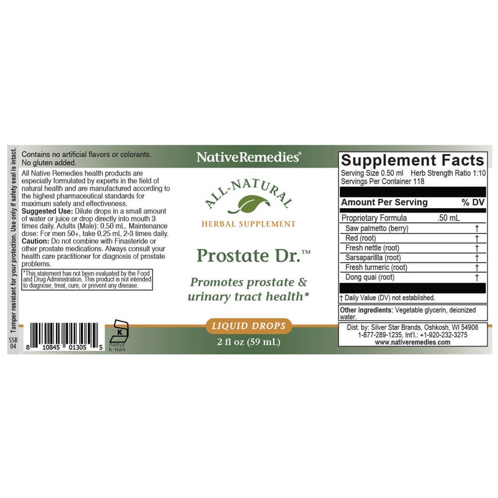 Prostate Dr. is a safe, non-addictive, natural herbal remedy specifically formulated to promote prostate gland health and functioning of the urinary tract in men. Formulated by our team of experts in natural medicine, Prostate Dr. contains ingredients specifically chosen for their immune support properties and their promotion of prostate health. Prostate Dr. is presented in liquid form, and is easy to ingest and hassle-free with no artificial colors or preservatives. Used regularly, Prostate Dr. provides ongoing support to a healthy prostate. The formula remains true to the full spectrum method of herbal extraction, ensuring the bioavailability and balance of all the active ingredients contained in the remedy. This manufacturing method also significantly reduces the likelihood of side effects and ensures that all active ingredients are in perfect balance. All Native Remedies homeopathic products and biochemic tissue salts are manufactured in a FDA-registered and cGMP-compliant pharmaceutical facility under the supervision of qualified homeopaths and responsible pharmacists. Individual ingredients are listed in the Homeopathic Pharmacopoeia of the United States (HPUS). Prostate Dr. is a 100% herbal formula and contains the following ingredients: African potato, Saw palmetto, Small-flower willow herb. *These statements have not been evaluated by the Food and Drug Administration. This product is not intended to diagnose, treat, cure or prevent any disease.
