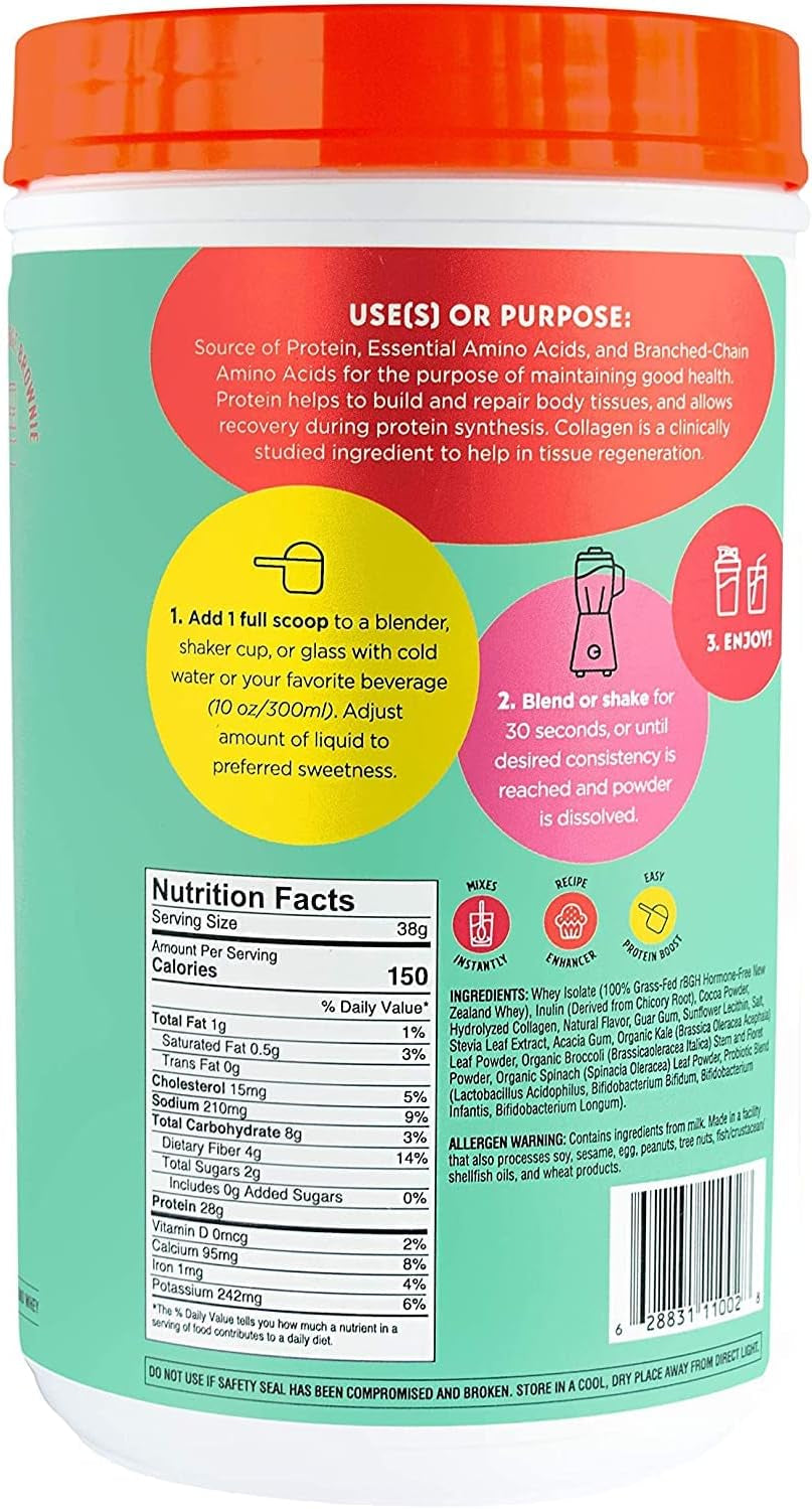 Give your morning shake or smoothie rich flavour when you use this Natreve fudge brownie sundae whey protein powder. A full serving of 100 percent real organic greens makes this formula a smart addition to your daily diet, and the collagen and probiotics may provide some additional health benefits. Each serving provides 28g of protein to give your mornings a tasty boost. This Natreve fudge brownie sundae whey protein powder is non-GMO and gluten-free to meet your personal ingredient standards.