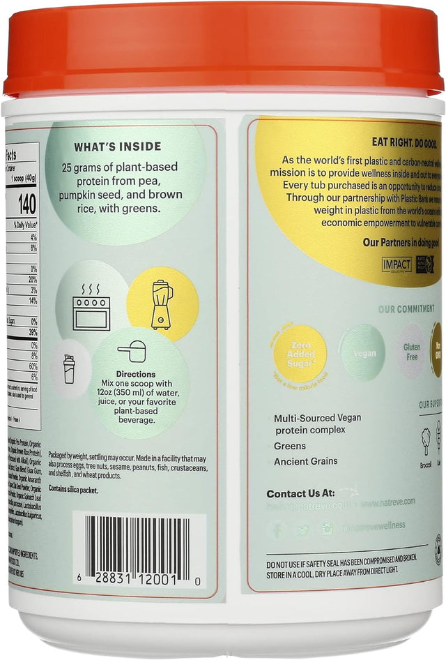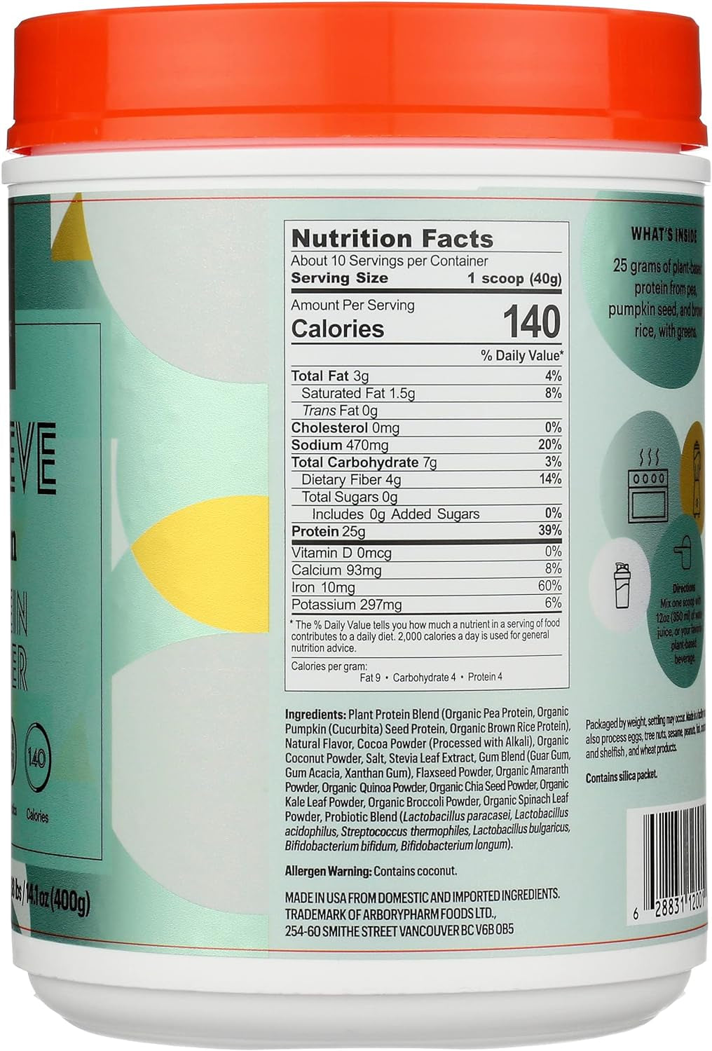 Natreve Vegan Fudge Brownie Protein Powder, 14.1 OZ
