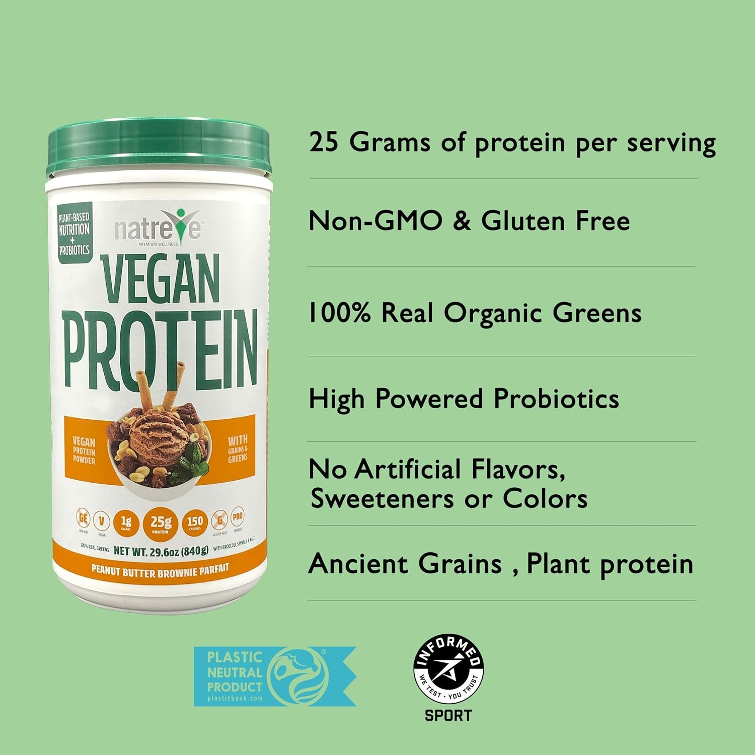 Natreve Vegan Protein Powder - Gluten Free Non-Gmo Whole Food Protein with Vegetables - 30Oz (Peanut Butter Parfait)