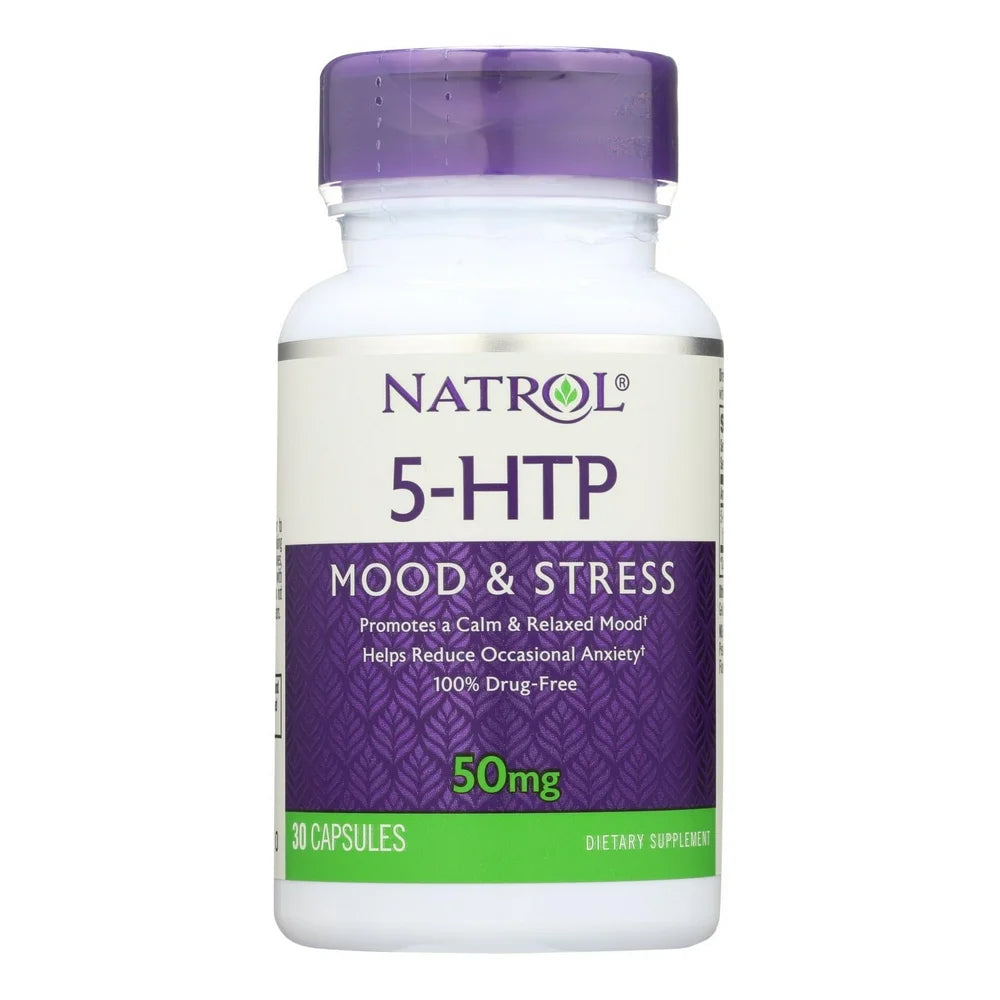 Natrol 5-htp mood & stress dietary supplement brings 50 mg. Of calming nutrients to your daily diet that may help alleviate symptoms of occasional anxiety. 5-htp helps your body produce serotonin to potentially relieve tension, improve your mood and keep you feeling calm. We formulated this supplement without any addictive ingredients or drugs to create a non-habit forming result. This bottle contains 30 dietary supplement capsules.