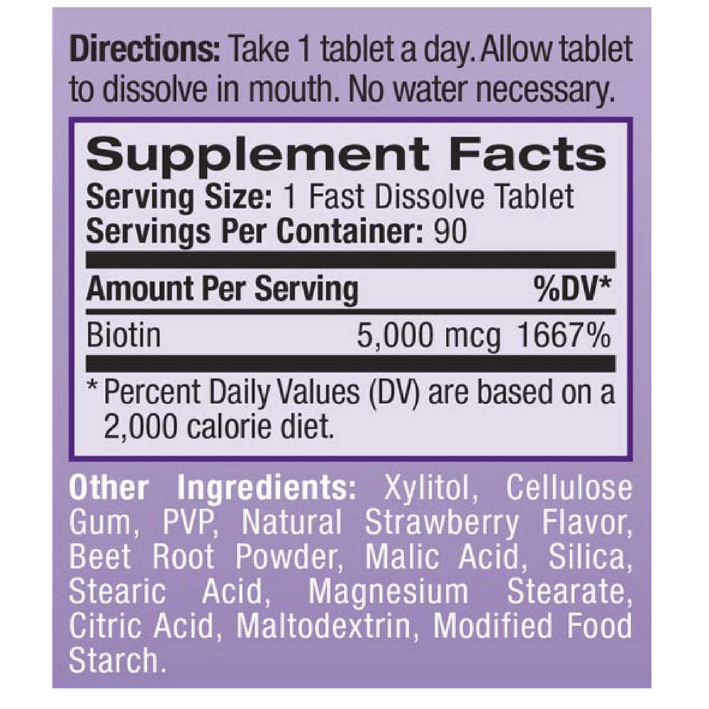 Natrol Biotin 5,000Mcg Fast Dissolve, 90 Tablets (Pack of 3) is backordered and will ship as soon as it is back in stock.
