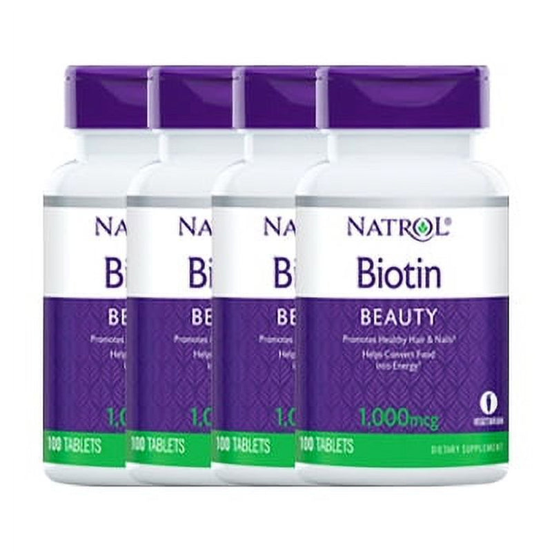 Natrol Biotin, Maximum Strength, 10,000 Mcg, 100 Tablets, 4 Pack