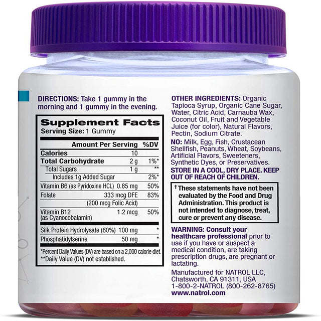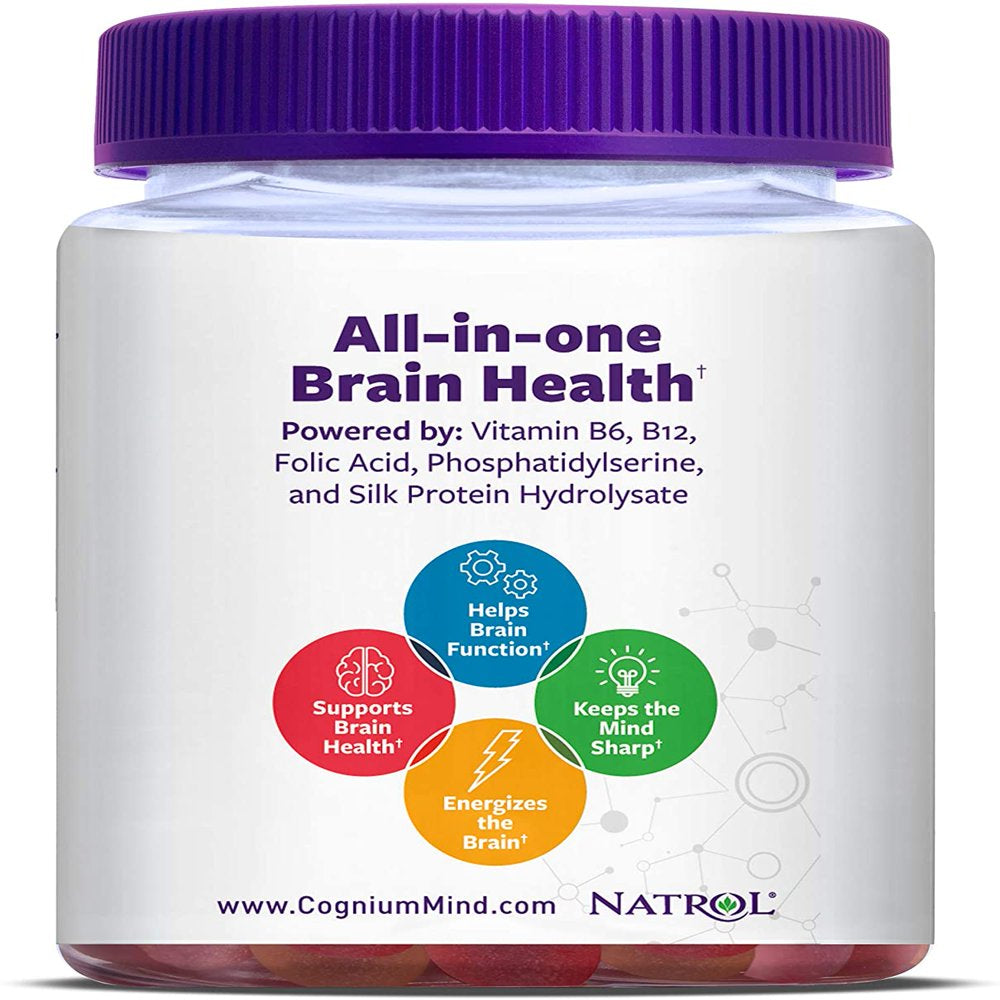 Natrol Cognium Complete Gummies are an all-in-one brain health supplement. This nutrient blend is specially formulated with Vitamin B6, B12, Folic Acid, Phosphatidylserine, and Silk Protein Hydrolysate. Support brain health function, Improves memory and recall, Energizes the Brain, Stay mentally sharp, #1 most studied ingredient for memory among leading brain health supplements, 100% Drug Free, Results in as little as 4 weeks. A delicious way to stay mentally sharp: Non-GMO, Gluten Free, Vegetarian & Gelatin Free, No Synthetic Dyes, No Artificial Flavors or Sweeteners. These statements have not been evaluated by the Food and Drug Administration. This product is not intended to diagnose, treat, cure, or prevent any disease