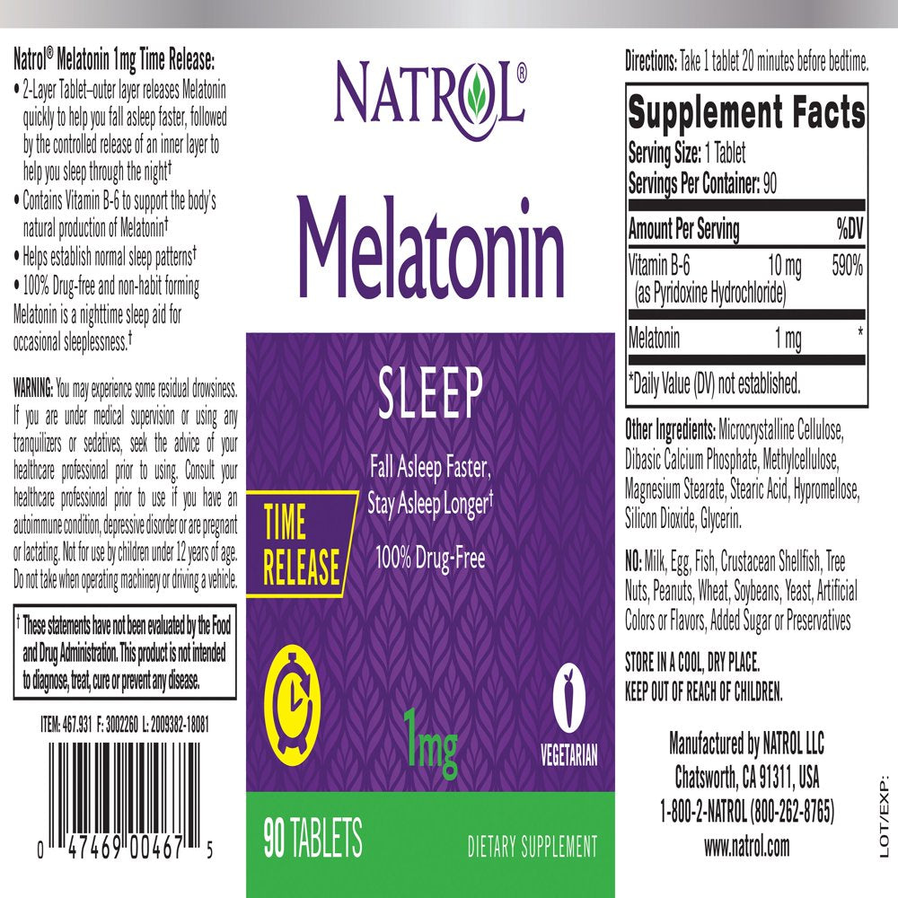 - TIME REALEASE FORMULA – Natrol Melatonin Time Release tablets provide an initial dosage of melatonin to help you fall asleep fast, then slowly releases additional melatonin throughout the night to help you stay asleep so you can wake up refreshed.