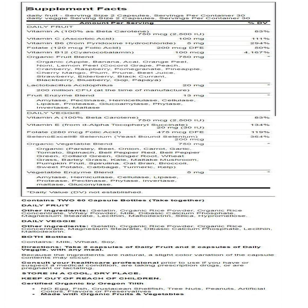 - Two 60-count capsule bottles, one Fruit Festiv and one Veggie Festiv